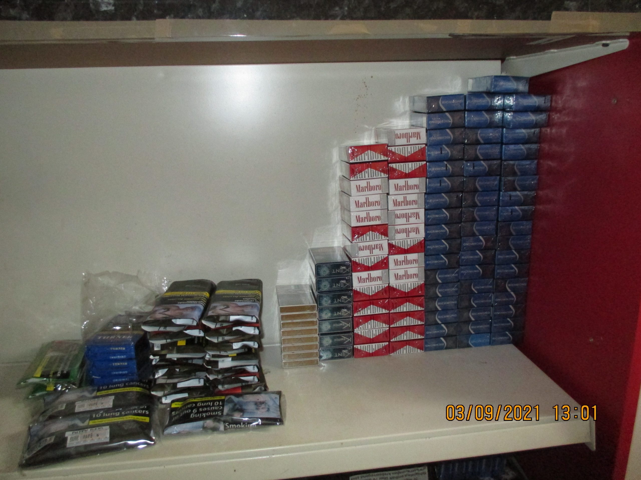 On 3 September 2021, illicit tobacco was found and seized from inside the business, stored behind the sales counter. The total amount found behind the sales counter was 296 x 20 packets of cigarettes and 62 x 50g pouches of hand rolling tobacco.