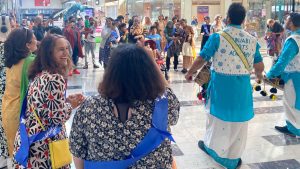 Bradford saw its first ever curry mela in July 2022. The very first Bradford Curry Mela, showcased an array of culinary cuisine from the Indian subcontinent, along with masterclasses, entertainment and cultural heritage shared through various activities such as the roti-making class, which was run by Bradford South Asian Heritage Festival. The event took place at Bradford City Park, in Centenary Square, surrounded by a water fountain, in which children splashed away in, whilst parents basked in the sun and enjoyed pakoras, samosas and chaat, as well as other South Asian Street food snacks.