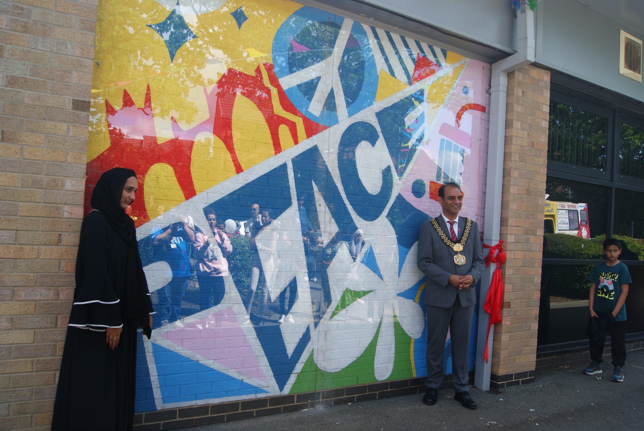Students at Belle Vue Girls’ School have transformed a once-blank school wall into a bold symbol of unity, unveiling a striking community mural at a public mela attended by the Lord Mayor of Bradford, Councillor Mohammed Shafiq.