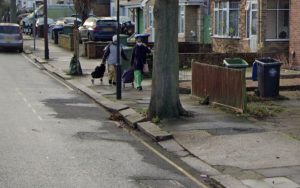 Uneven pavement on Scarle Road, Brent. Residents have complained that the pavements have become uneven and ‘riddled with cracks and potholes’. Image LDRS