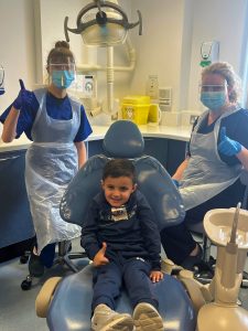 Linzi Maybin, senior dental Officer, Isaac Hussain, patient and Sarah Lowery, dental nurse