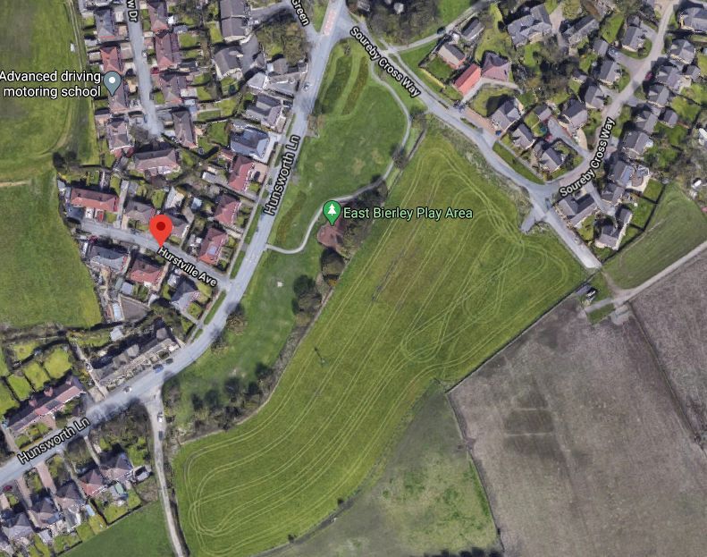 An aerial view of land at East Bierley, which has been earmarked for 46 homes as part of Kirklees Council’s Local Plan.