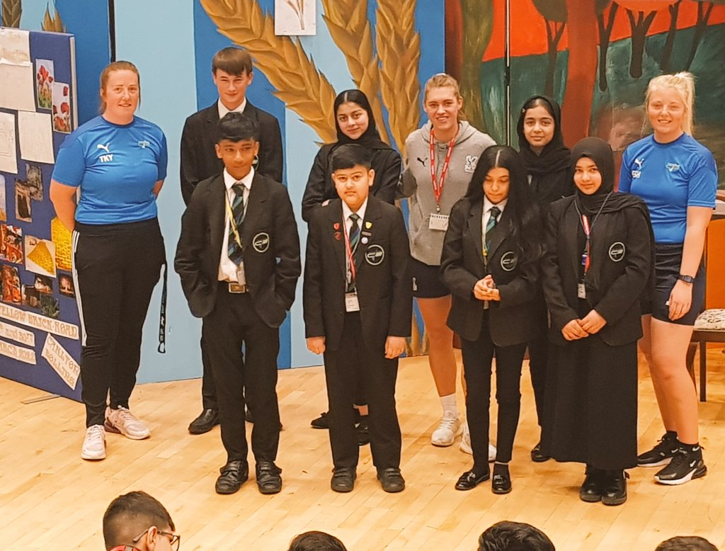 Molly-Mae Sharpe who began her career playing for Bradford City – her home town – was welcomed back to the district to give a talk to female students at the school about the possibilities of pursuing football as a career.