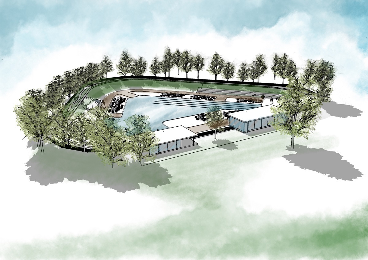 “Naturally filtered, the pool would feature six lanes of 50m for swimming and aqua classes and a large lake area for dipping, splashing, swimming and more.