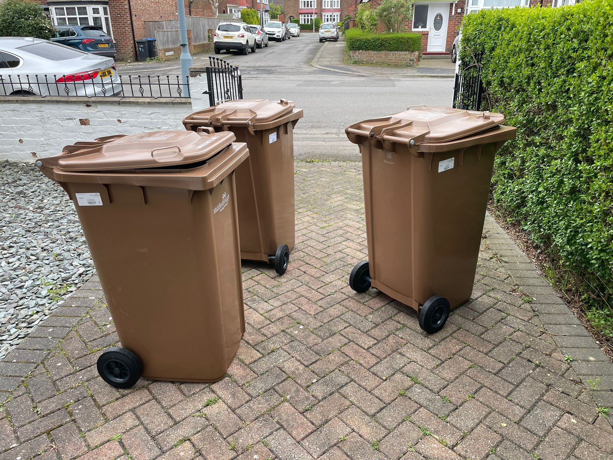 New brown bins replaced old green ones in the rollout of the new subscription-based green waste collection service in Middlesbrough. Image:Gareth