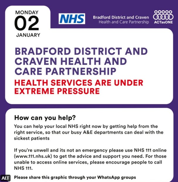 A similar statement was posted on Twitter by Airedale Hospital on New Year’s Eve.