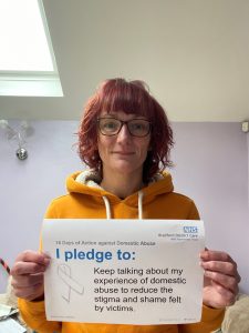 One pledge, by Catherine Jowitt, Head of Charity and Volunteering at the Care Trust speaks from personal experience: “I pledge to keep talking about my experience of domestic abuse to reduce the stigma and shame felt by victims.”