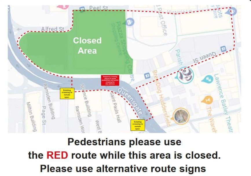As work continues on Queensgate, motorists will be diverted to the A62 Castlegate, Unna Way and Southgate.