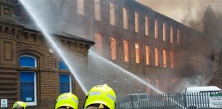Footage on social media shows flames engulfing the Grade-II listed building, Dalton Mills in Dalton Lane, Keighley.