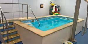 The pool is primarily used by patients with arthritis, various musculoskeletal problems, and those recovering from orthopaedic surgery. Also known as aquatic therapy, the combination of warm water, buoyancy, and massage jets can be used to help reduce pain, improve muscle relaxation, increase range of motion, and strengthen muscles.