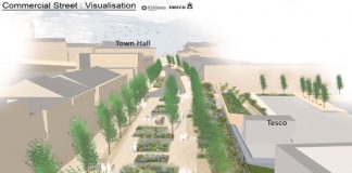 Improvements to the town centre including significant changes to Commercial Street, which would move away from being a thoroughfare dominated by car traffic, with improvements to the public realm as well sustainable transport routes.