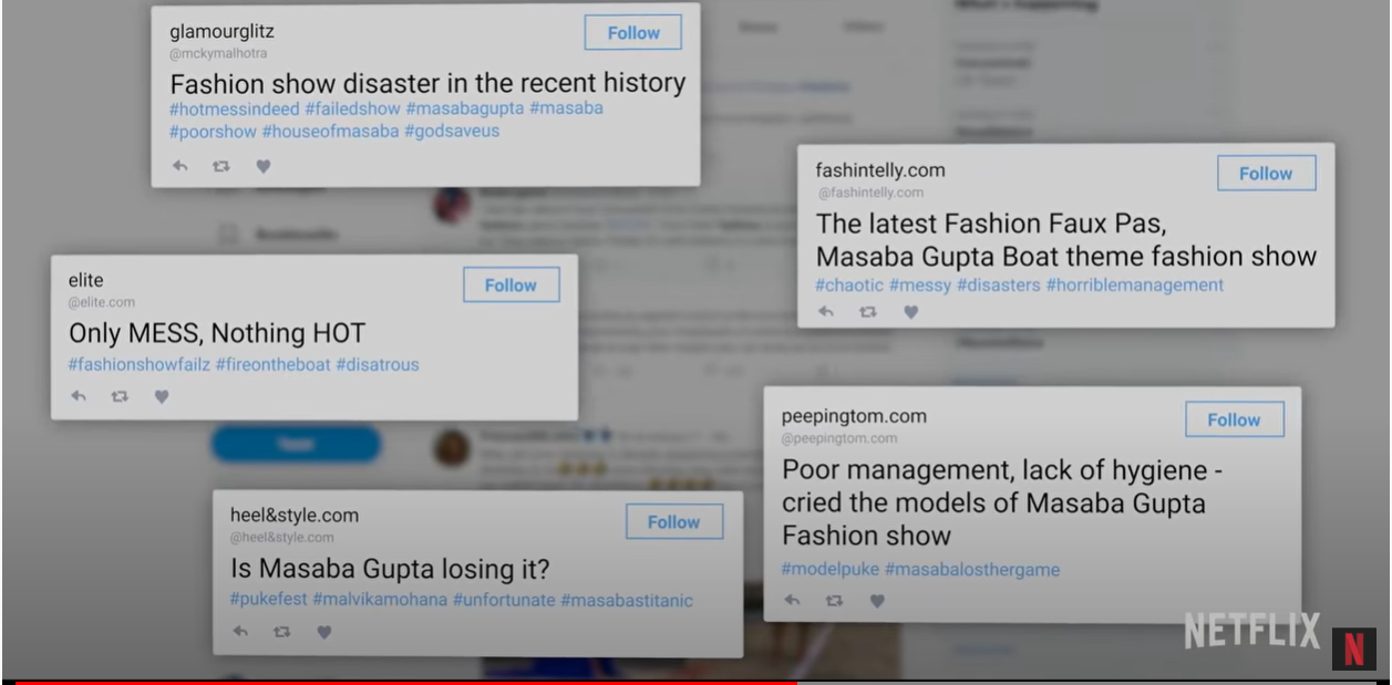 You can see that Masaba is carrying the weight of the world on her shoulders trying to juggle a million things at once, which leads to the culmination of her fashion show ‘A hot mess’, which sums up the Gupta’s, similar to a pressure cooker waiting to explode.