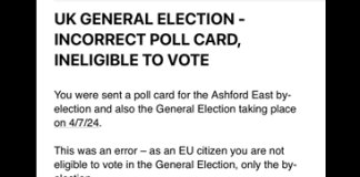 The LDRS is also aware of a polling card being sent to an ineligible voter in Staines-upon-Thames. Spelthorne Borough Council, which covers Staines-upon-Thames, confirmed 330 EU residents in the Ashford East ward who are eligible to vote in a council by-election on July 4 had been incorrectly sent polling cards for the General Election.