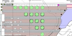 It says the plaza will have two retail kiosks and 20 planters containing trees, shrubs and flowers.