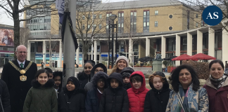 Year 5 pupils from Horton Grange Primary School joined the Lord Mayor of Bradford and our Editor, Fatima Patel on Wednesday for a flag raising ceremony outside City Hall to mark International Women’s Day.