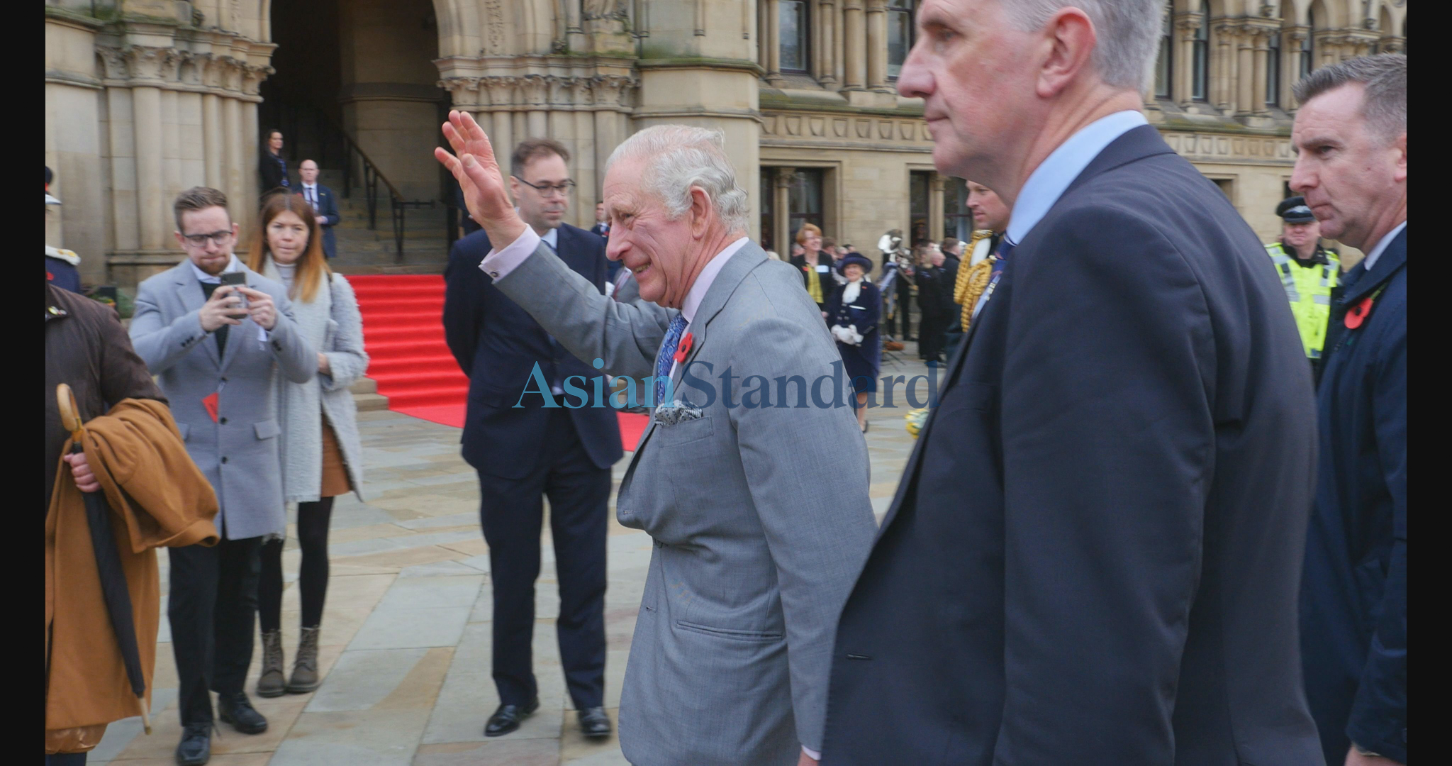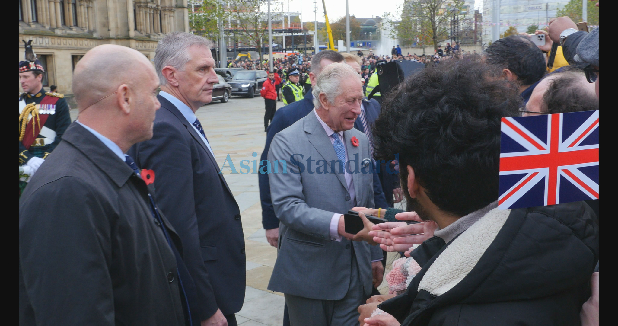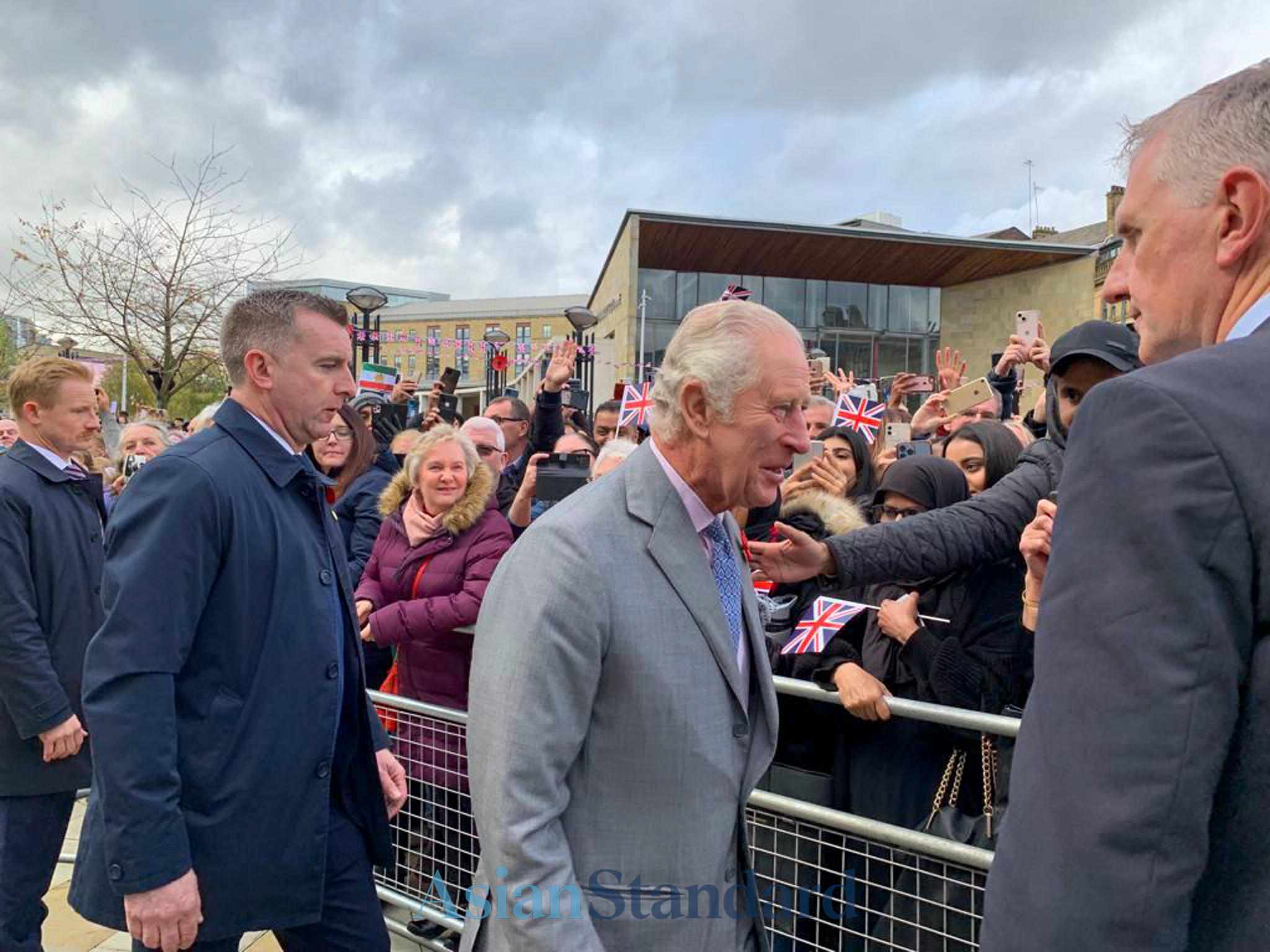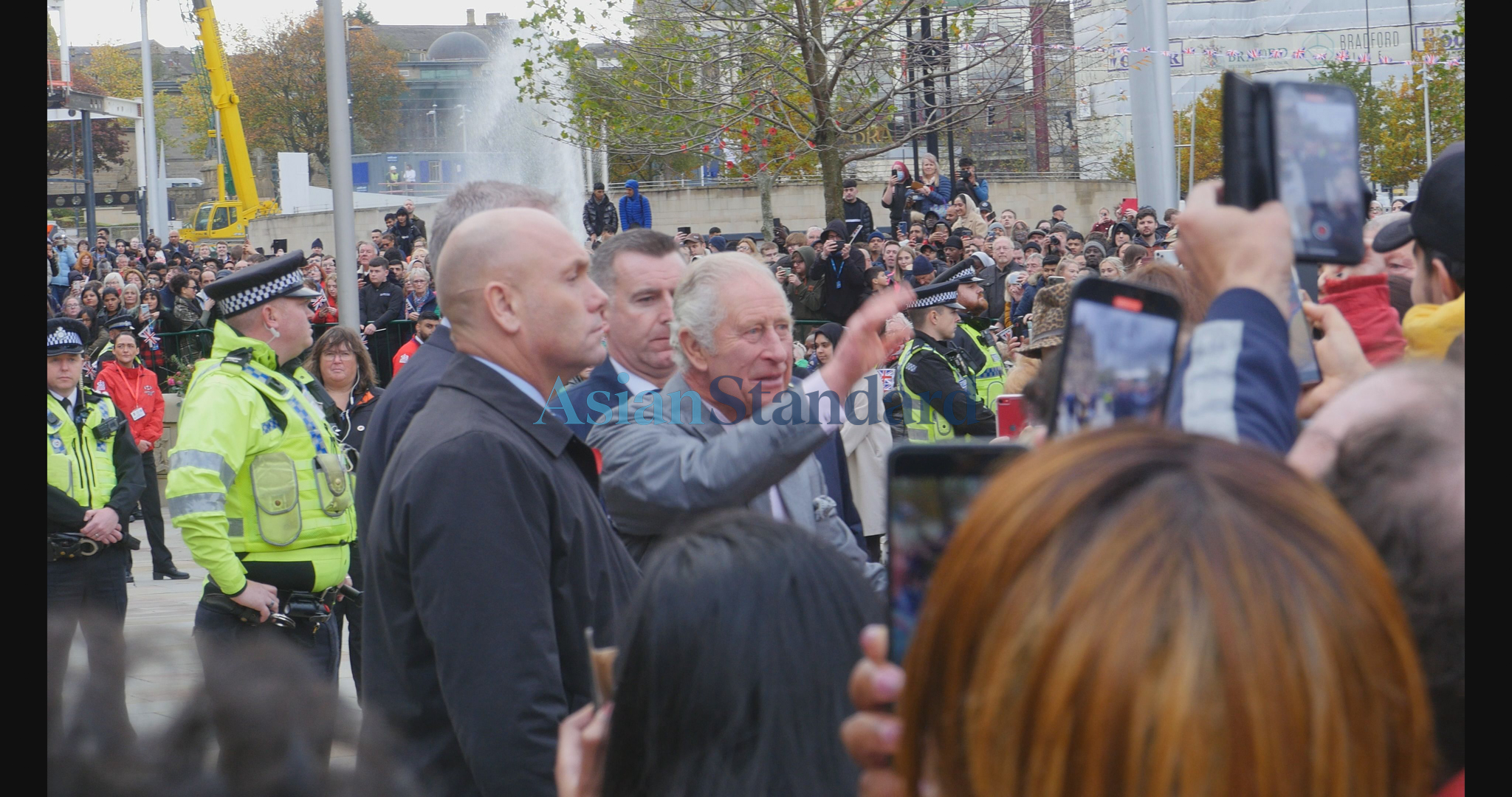 The first stop for His Majesty was Morrisons HQ, which speedily followed with a lively lunchtime visit to crowds at Centenary Square. The King arrived at Centenary Square for around 1pm to the eclectic sounds of a brass band orchestrated by the City of Bradford Brass Band under Musical Director, Johnathan Bates and the dulcet beats of the dhol by Punjabi Roots Academy.