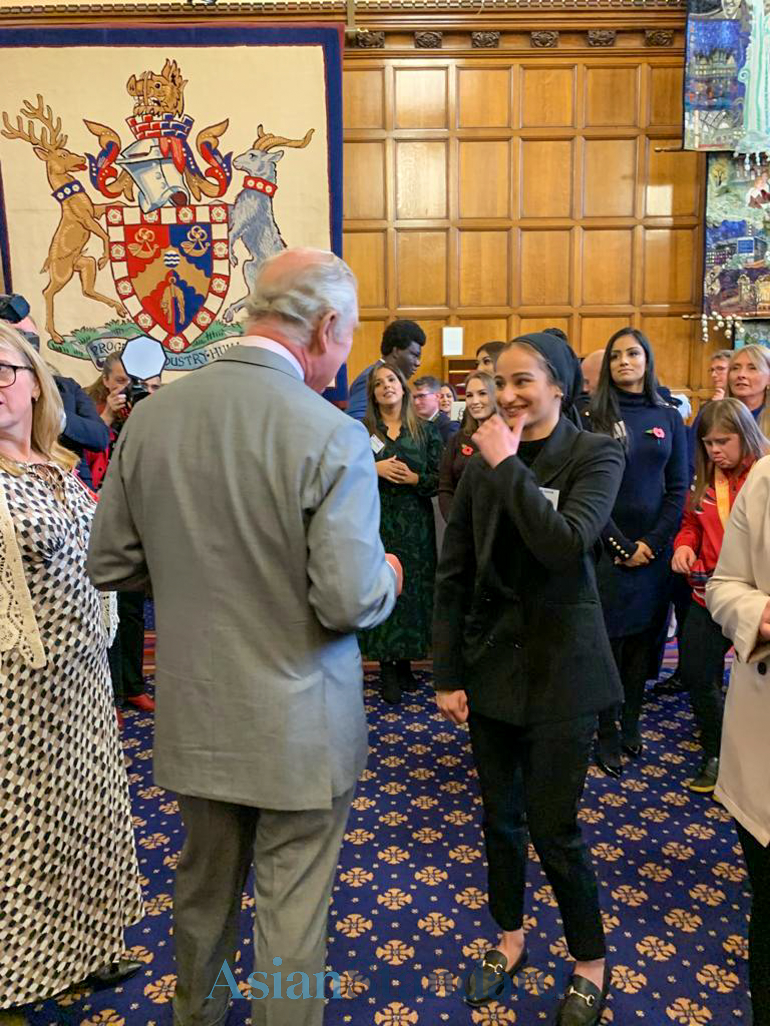 The King was then taken into City Hall by the Lord Mayor of Bradford and Kersten England to meet a group of entrepreneurs, sports professionals and community leaders.