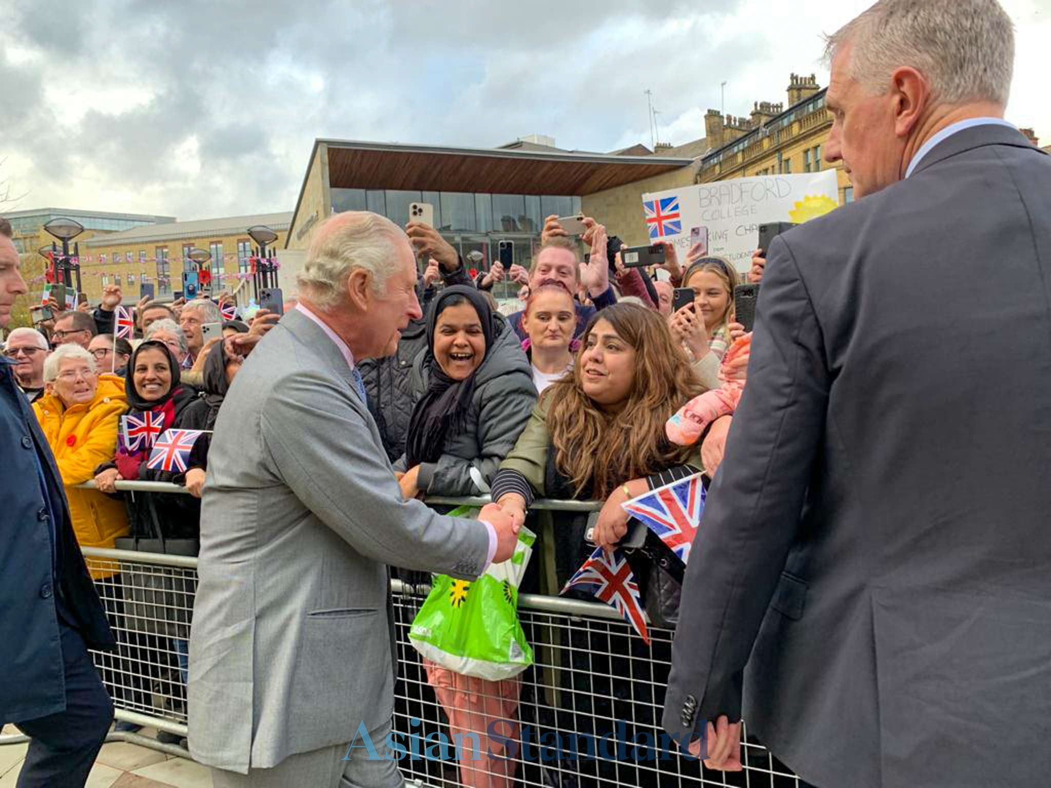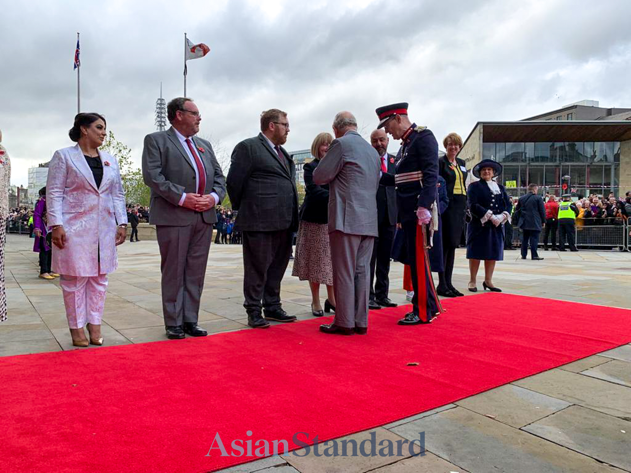 His Majesty was received by the Lord Mayor of Bradford, Cllr Martin Love and Lady Mayoress Helen Love, where The King then proceeded to meet the excited, diverse and cheerful crowd.