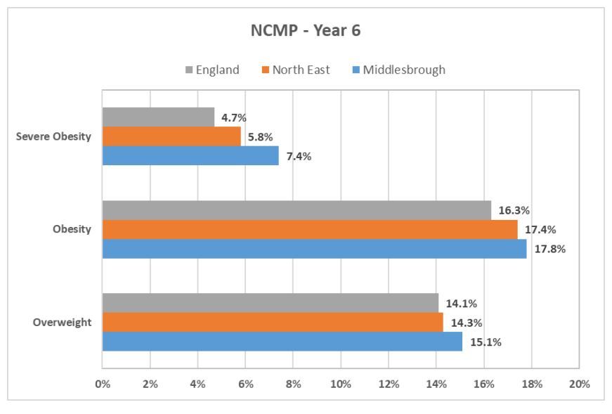 Around one in ten children are obese when they start school and that figure shoots up to one in five once they are in Year 6. Middlesbrough has a larger proportion of severely obese, obese, and overweight children than the North East and England average.
