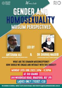 Muslim Women’s Council have organised a seminar on Monday 19 June, entitled “Gender & Homosexuality – Muslim Perspectives”.