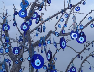 When someone has put nazar on you it means they are jealous and think ill of you, so as a tradition families burn red chillies, place a blue evil eye amulet in their household or wear it as a piece of jewellery to ward off negative energy and it protects you.