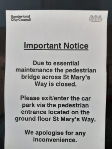 Sunderland City Council made a decision to close the pedestrian bridge over St Mary’s Way at the end of April, 2025, for public safety reasons.