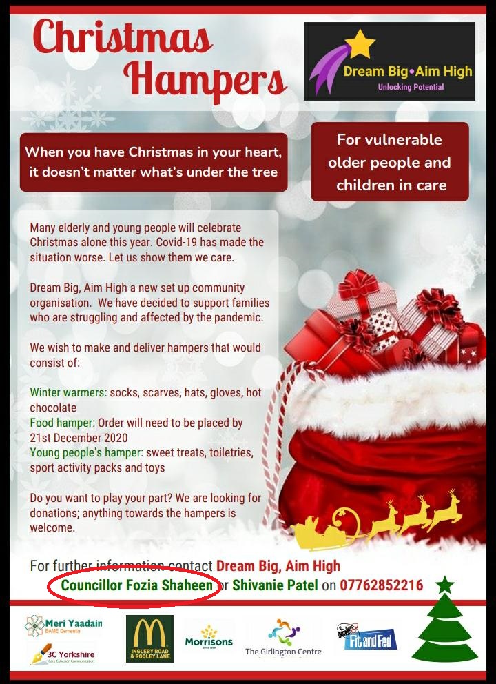 Her poster advertising for donations asks people to contact COUNCILLOR Fozia Shaheen and not Fozia Shaheen. Asian Standard has also seen a Whatsapp message from the Well Girlington Whatsapp group, dated 22 December where Cllr Shaheen has shared that she has received ‘financial support’ for her Dream Big, Aim High project.