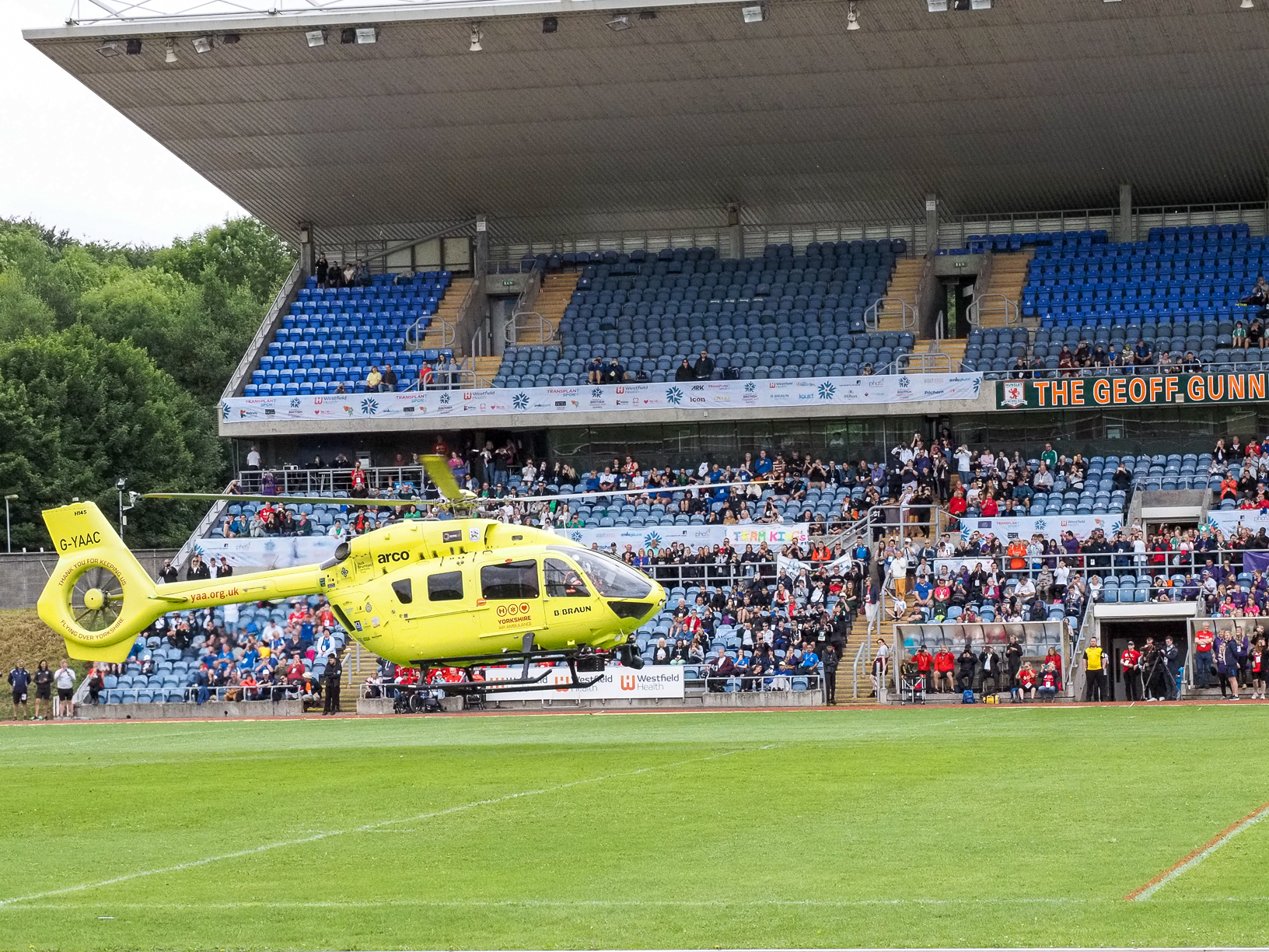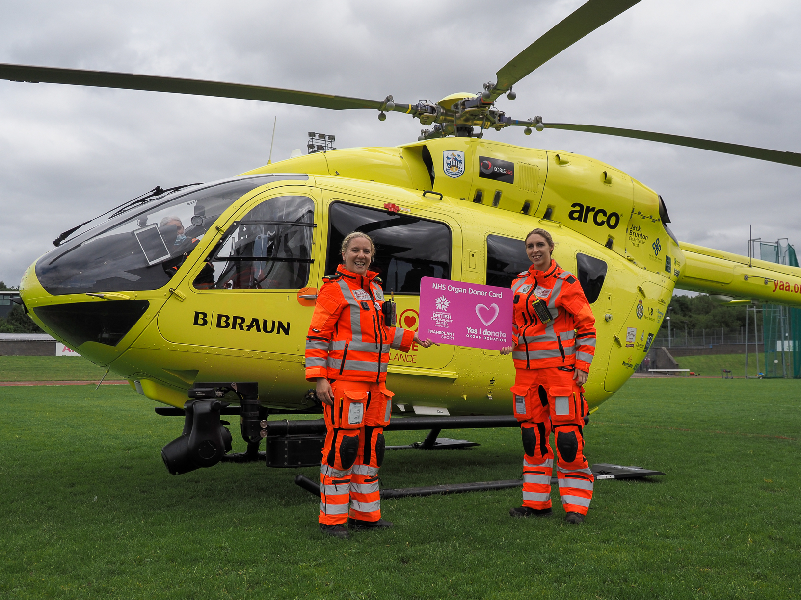A highlight of the weekend and an exciting first for the Games saw crowds at the John Charles Centre for Sport surprised by Yorkshire Air Ambulance, when the first ever British Transplant Games branded, region-specific organ donor card arrived by helicopter.