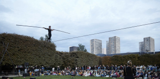 The company celebrates the art of tightrope walking, and the 45-minute tightrope show will take place at a height of 4.5 metres over a length of 25 metres, performed with the help of the audience.