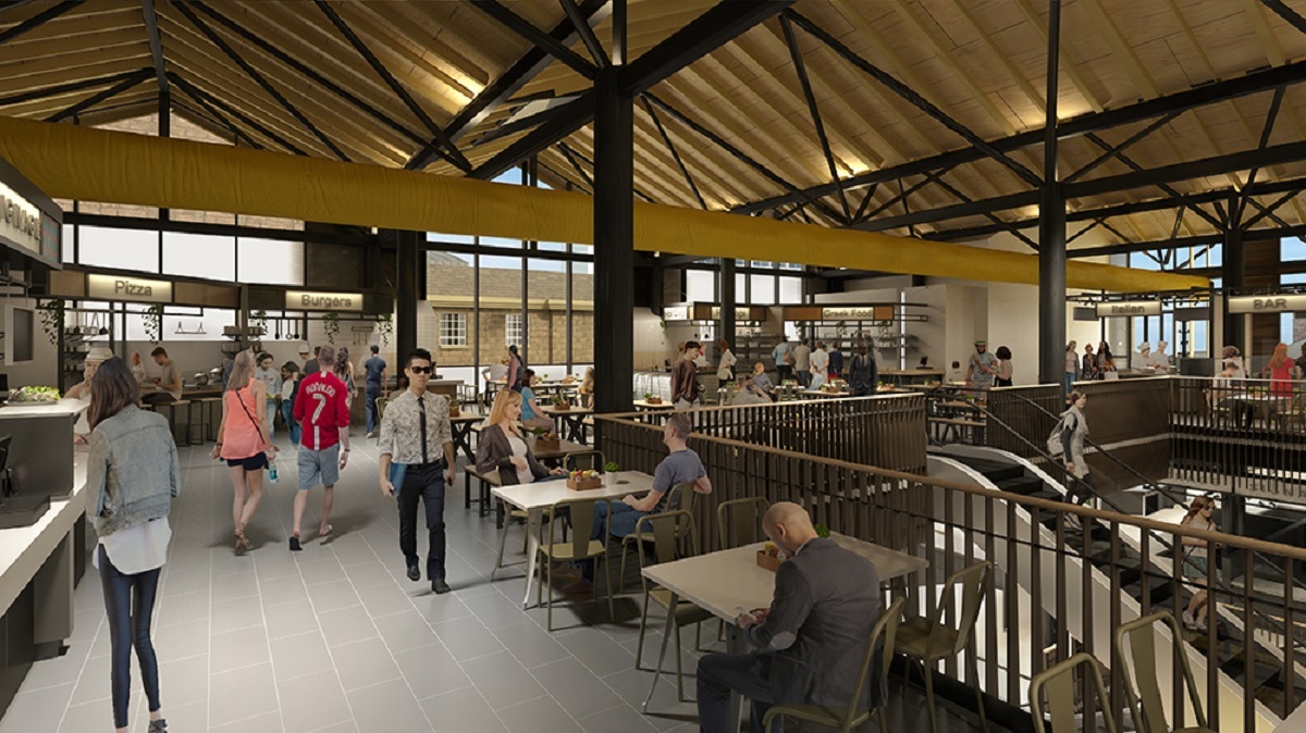 The market’s top floor will house an open-plan food court for 13 hot food and drink vendors with seating for over 500 customers.