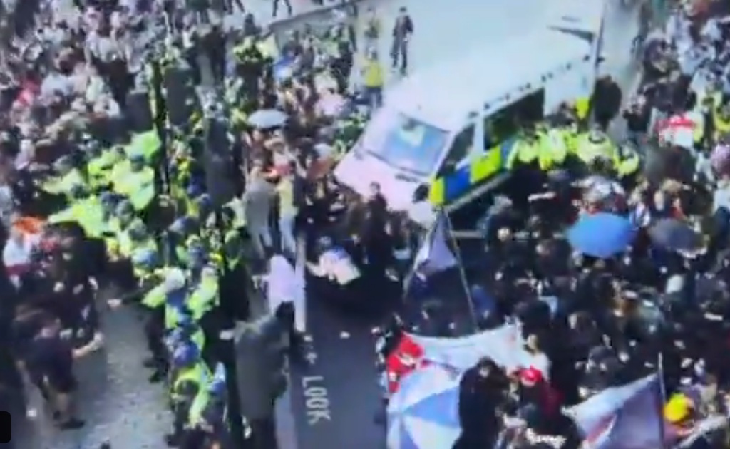 Police said officers faced “unacceptable violence” from some protesters, with four sustaining serious injuries, including broken teeth, a possible broken nose, concussion, a prolapsed disc, and a head wound.