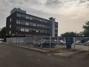 The Forster Building was constructed in 1975 and is four storeys in total height with a large car park bounded by a fence.