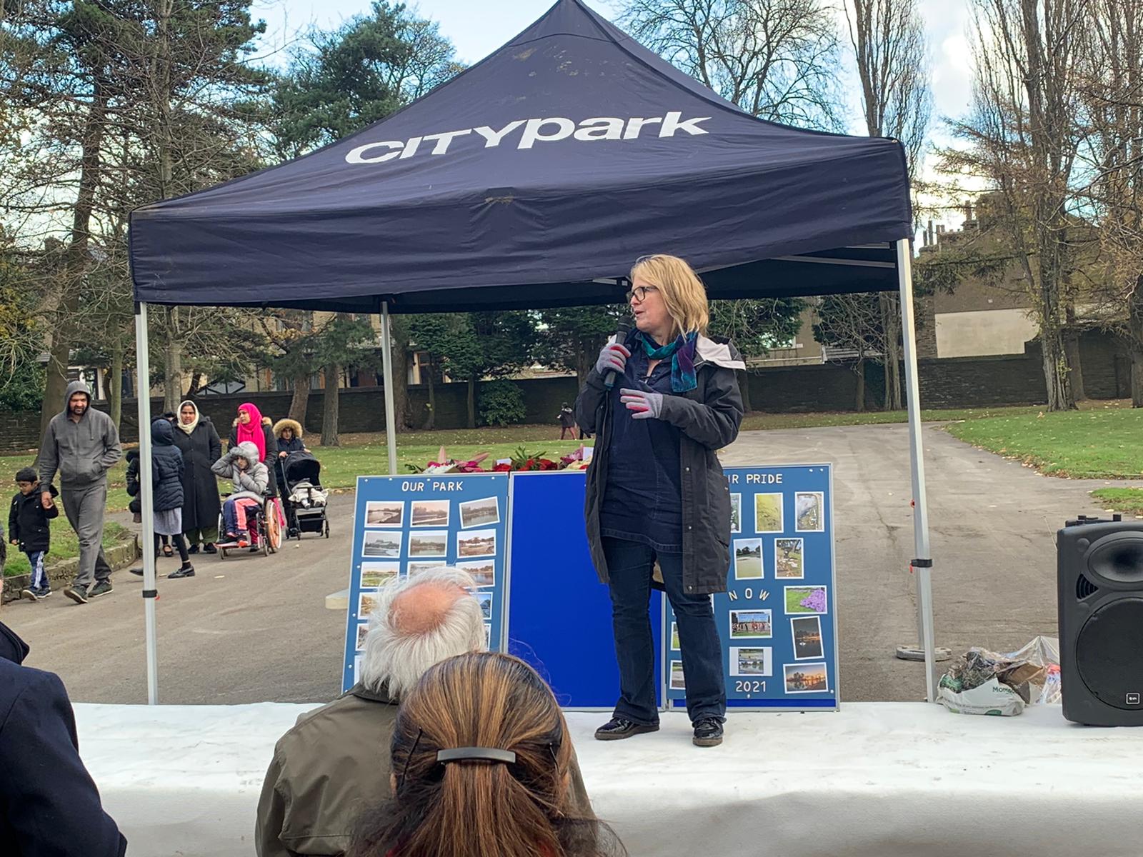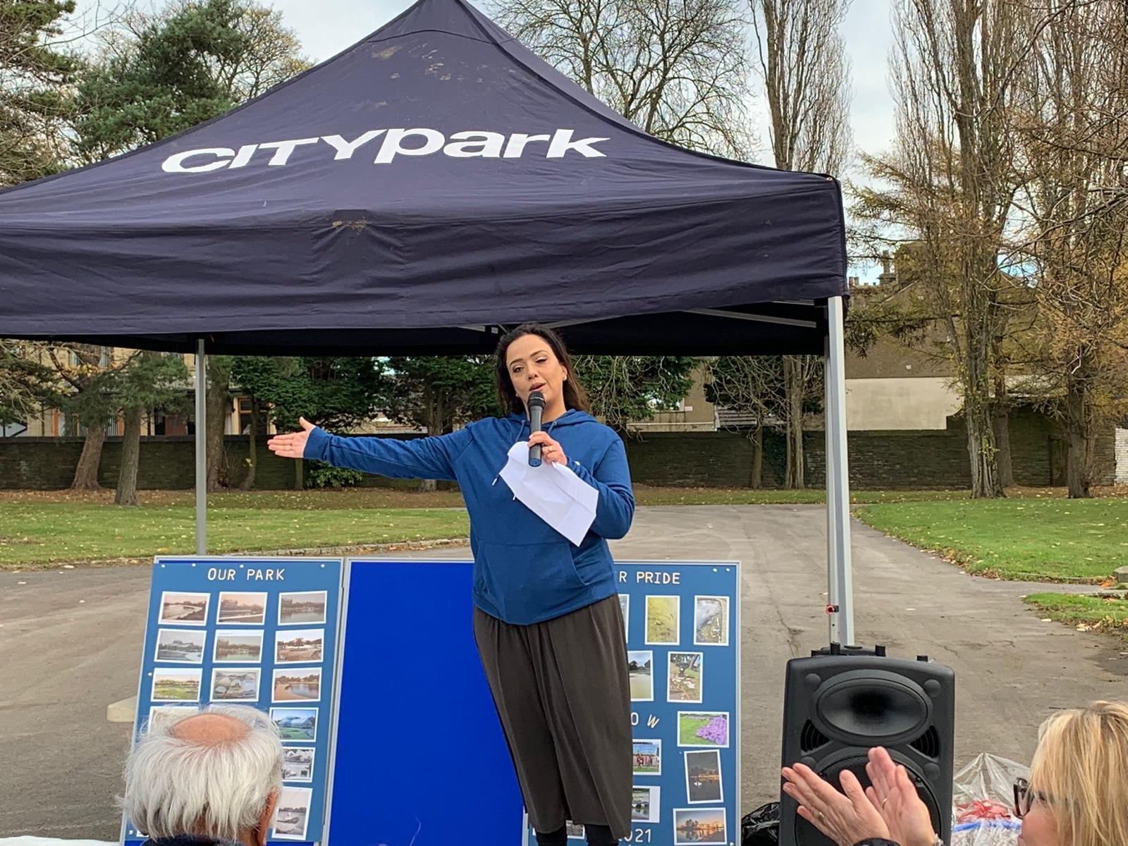 Najm Khalid, A volunteer from the walking group for women gave a speech on the benefits of clean air on mental and physical wellbeing, and a local woman Safeena Khan told her story on why the park is special to her and her family following the loss of her mum.
