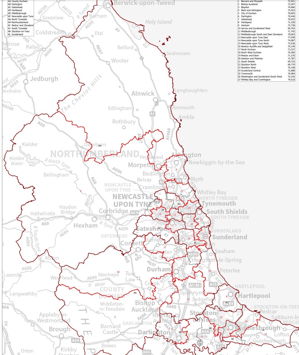 Latest plans from the Boundary Commission to redraw the political map in the North East.